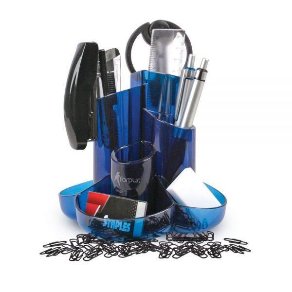 Galda organizators, 9 priekšmeti(lineāls, automātiskā pildspalva un zīmulis, šķēres, papīra nazis, dzēšgumija, skavotājs, skavas Nr.10, saspraudes)