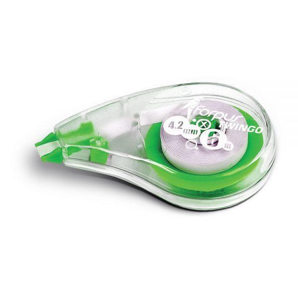 Lentas korektors ātrai un akurātai teksta labošanai. Vienlīdz labi pārklāj visu tipu papīru un tinti. Caurspīdīgais korpuss, tāpēc var redzēt, cik daudz lentas atlicis. Vienreizējai lietošanai.