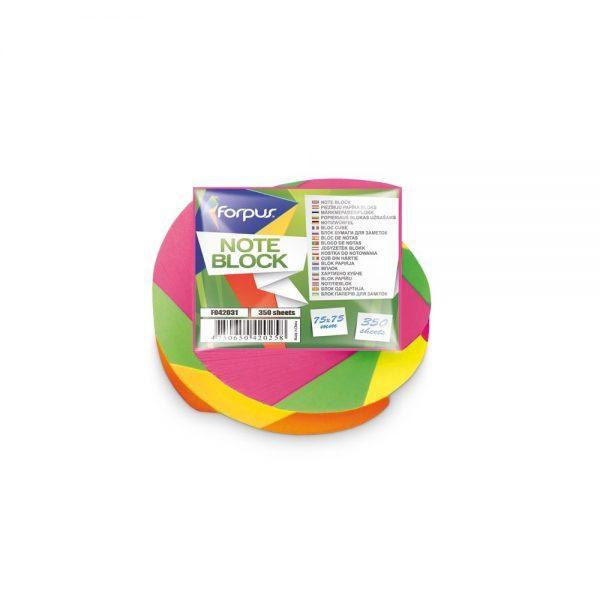 Piezīmju papīrs spirālveida, 7.5×7.5cm, neona, 350 lpp