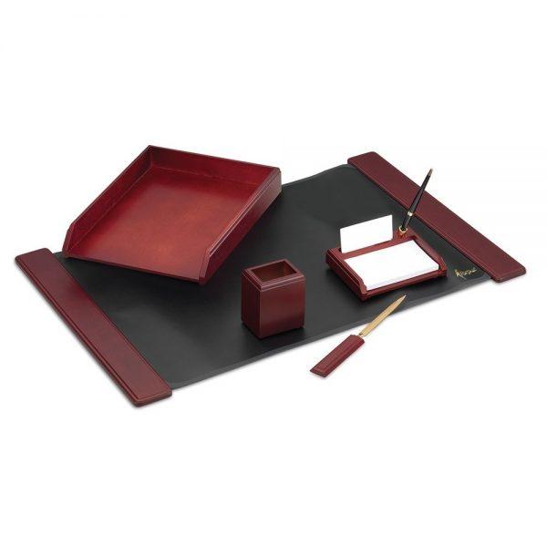 Komplektā ietilpst: vēstuļu nazis, trauciņš pildspalvām un zīmuļiem, trauciņš piezīmju papīram un vizītkartēm, plauktiņš, galda virsma (66×43 cm)
